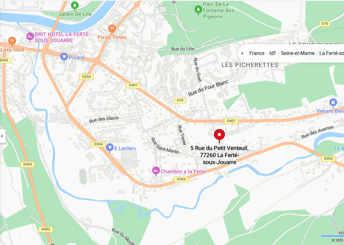 Adresse : 5 rue du petit Venteuil, 77260, LA FERTE-SOUS-JOUARRE, Seine-et-Marne